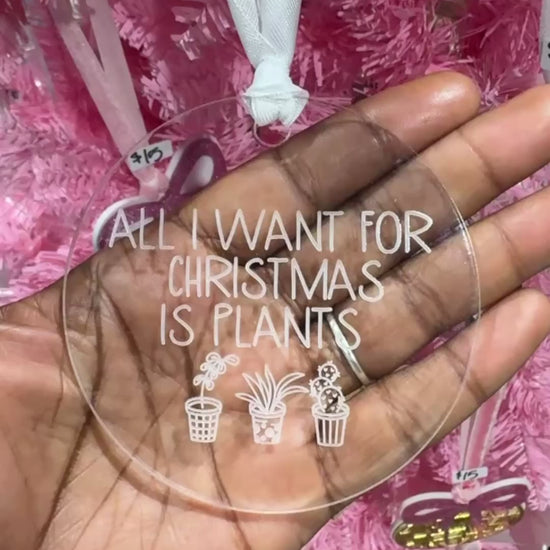 Celebrate your love for plants with this charming laser-cut and engraved acrylic ornament. Featuring a witty message that speaks to every plant parent's heart, this clear acrylic piece catches the light beautifully on your tree or as a year-round decoration. The precise laser engraving creates crisp, detailed lettering that's sure to bring a smile to fellow plant enthusiasts. Perfect as a gift for the green-thumbed friend who'd choose foliage over anything else—because let's face it, plants are the best gift anyway!